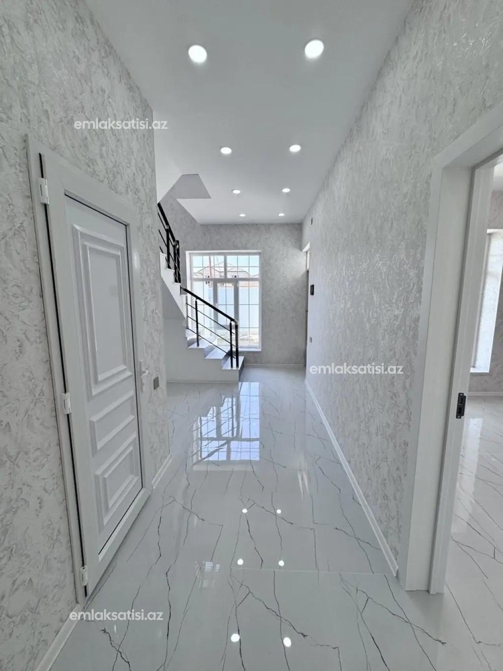 Binə qəsəbəsində, mərkəzdə, yola yaxın, əla yerdə, tam təmirli, kupçalı, ipotekaya uyğun, qazı, işığı, suyu daimi, keyfiyyətli tikilmiş, mərtəbələrarası monolit beton olan paket sənədli ev.